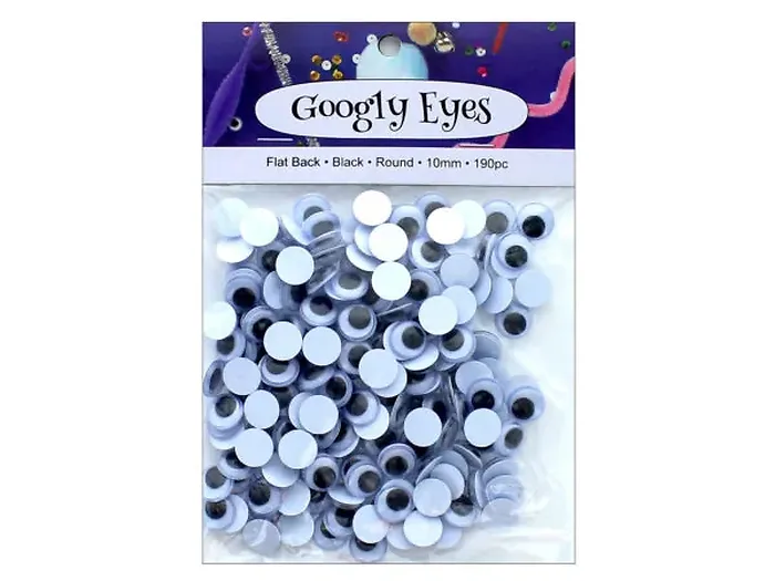 Measuring approximately 10mm in diameter, these traditional black and white googly eyes will inspire creativity in both kids and adults. Packaged in a convenient hanging polybag, you'll have plenty on hand for all your crafting needs!