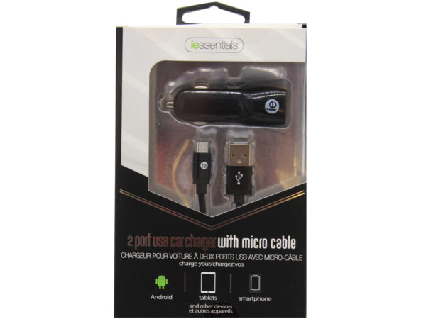 iessentials 2.4 amp 2 usb port car charger with micro usb ca