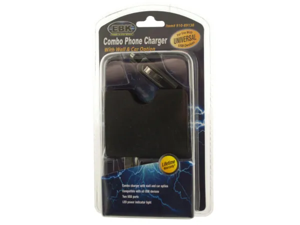Universal Dual Port USB Combo Wall & Car Phone Charger