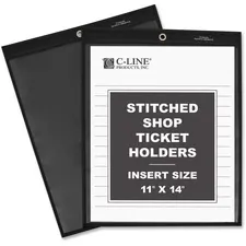 Stitched Shop Ticket Holders are made of heavy-duty clear vinyl pockets with stitched, reinforced neon color edging to make special jobs stand out. Design makes contents easy to identify with clear sides and metal eyelet at top for hanging. Insert size is 9" x 12". Stitched seams ensure long-lasting utility. Color-coded edging is ideal for organizing work by department, day of week or importance.