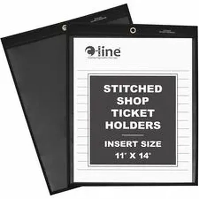 C-Line Shop Ticket Holders - Stitched - One Side Clear - 11" x 14" - Support 11" x 14" Media - Vinyl - Clear, Black - 25 / Box