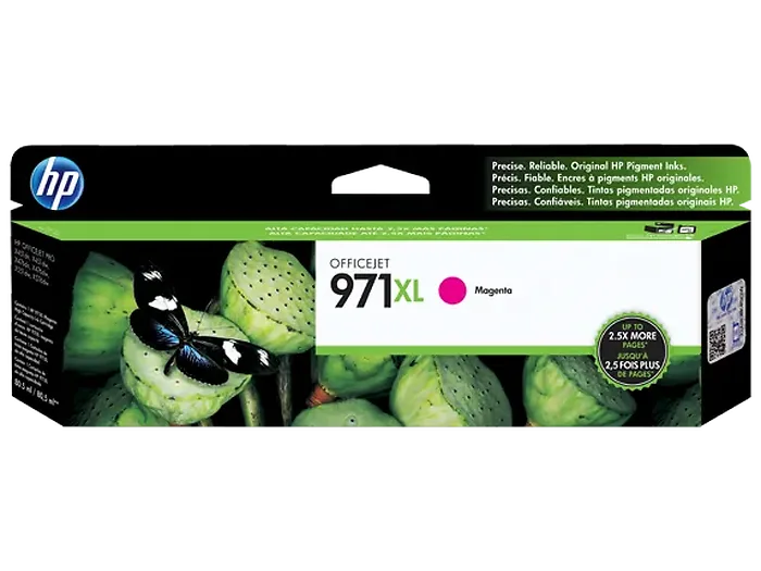 Lock in the quality and performance you expect from your HP Officejet Pro X printer with the cartridge it's designed to use. High-yield, magenta ink cartridge delivers high quality and high speeds in HP Officejet Pro X451dn, X451dw, X476dn, X476dw, X551dw and X576dw. Durable, highlighter-resistant, HP pigment inks generate professional-quality text and graphics and reliability. HP 971XL ink cartridge yields approximately 6,600 pages.