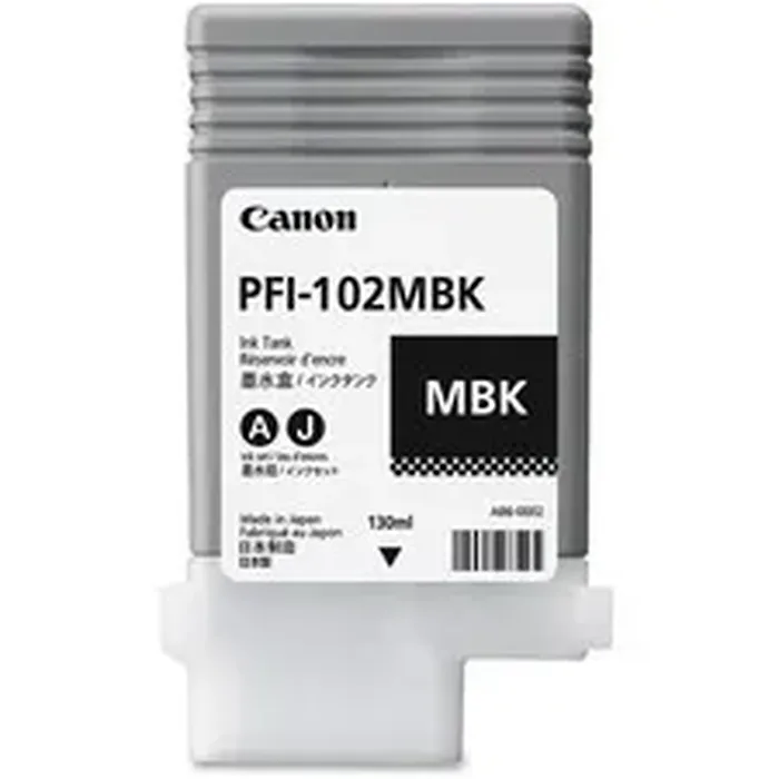 General InformationManufacturer:Canon, Inc Manufacturer Part Number:0894B001AA Manufacturer Website Address:http://www.usa.canon.com Brand Name:Canon Product Model:PFI-102MBK Product Name:PFI-102 Ink Tank Marketing Information:Ink tank maximizes the potential of your Canon imagePROGRAF IP500, iPF510, iPF600, iPF605, iPF610, iPF700, iPF710 and iPF720. Dependable, long-lasting design is engineered to produce consistent quality output. Product Condition:Original Packaged Quantity:1 Each Product Type:Ink Cartridge