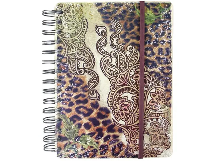 Inside, you'll find 100 pages of lined paper, ideal for writing your thoughts and ideas. The sturdy metal spiral spine allows the journal to lie flat for easy writing, and an elastic band closure keeps your notes secure.