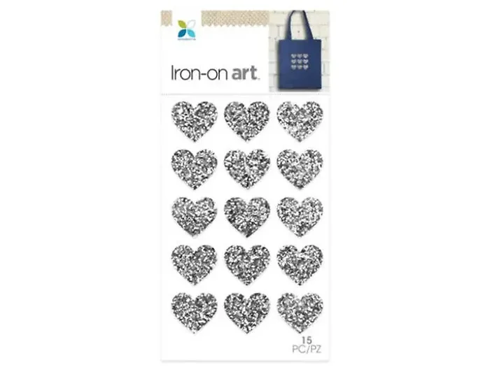 Transform your craft projects with the Momenta 15 Piece Sparkling Iron-On Heart Embellishments. These stunning silver hearts will add a touch of glamour and creativity to your tote bags, aprons, t-shirts, and even pants pockets.