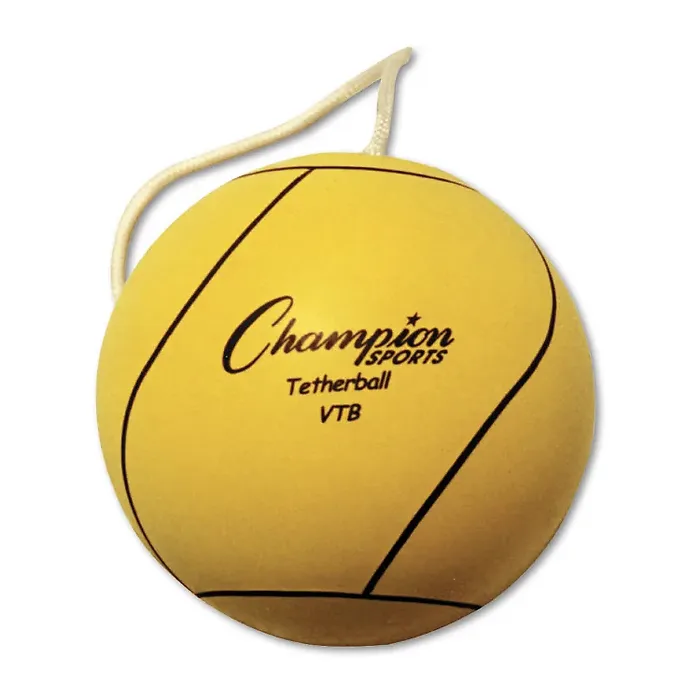 Heavy-duty tether ball features a water-resistant rubber cover and a nylon-wound, butyl bladder. White tether is made of durable nylon.