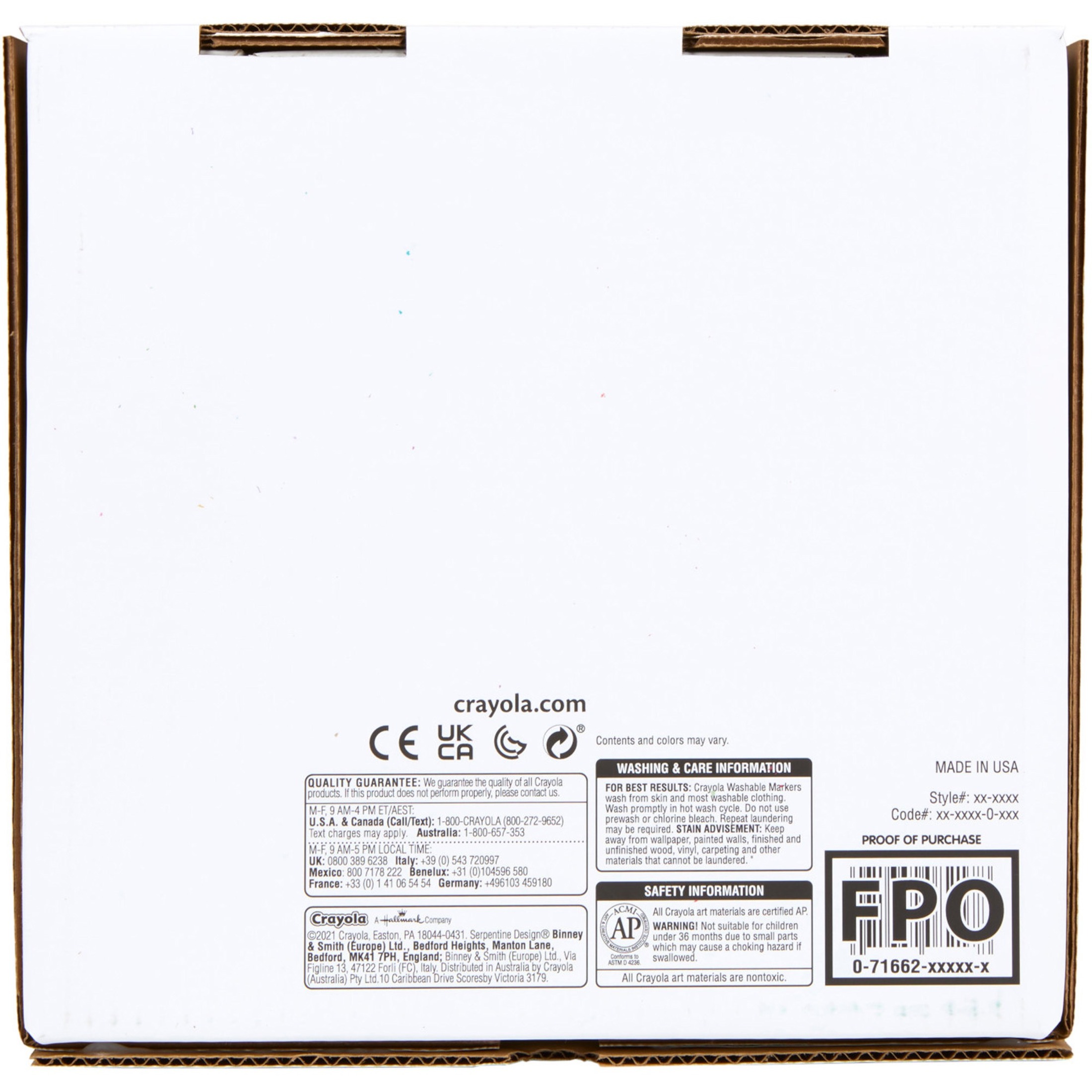 Multicultural Markers offer 24 colors specially formulated colors representing people of the world. Marks are washable from skin and most washable clothing. Marker meets the need for recognition of diverse populations, touching all curricular threads. Formula washes easily from skin, clothing and common household surfaces - even painted walls. With its conical tip, the Broad Line Marker is a versatile drawing tool. Perfect for coloring in large areas, these markers are also great for drawing thin lines or dots. Children can even create a ribbon effect with lines that taper from thick to thin. Broad-line markers lay down plenty of color and won't smudge or bleed through paper. Ink is certified AP nontoxic.