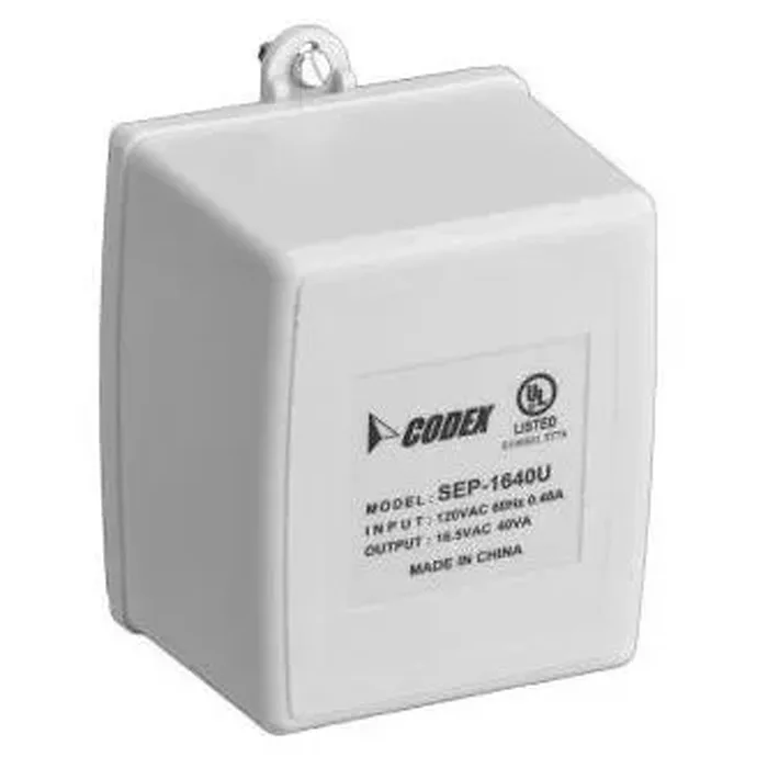 D1640 Transformer plug-in, 16V 40VA. System transformer rated at 16.5 VAC, 40 VA.