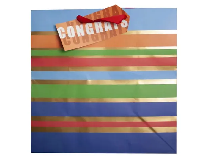 Celebrate special occasions with our Large Striped Congrats Gift Bag! This stylish gift bag features vibrant stripes and a cheerful 'Congrats' message, making it perfect for gifting to friends, family, or colleagues for events like graduations, promotions, and other achievements.