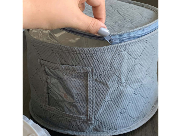 The Handy Gourmet Dishware Storage Set includes two collapsible rounds that protect your dishware for future dining occasions. Perfect for safely storing up to 12 bowls or plates, this set features a secure zipper closure to keep your dishes dust and dirt-free.