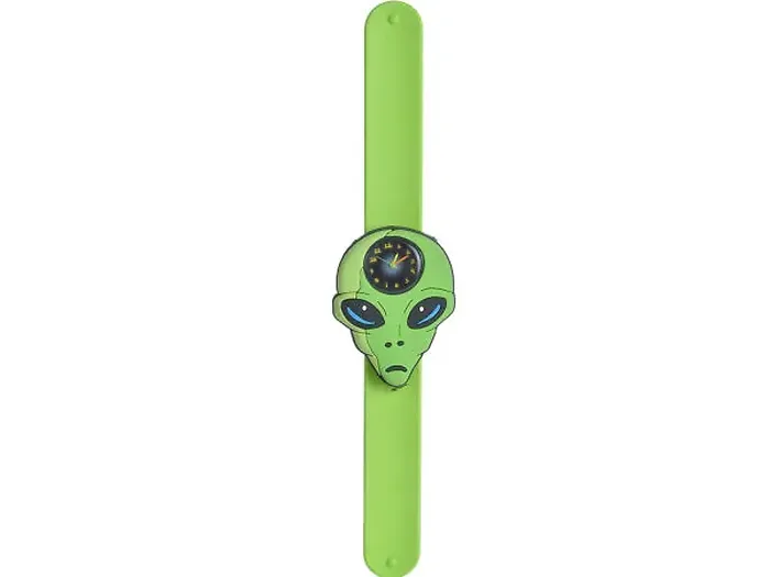 The Wild Republic Alien Slap Watch adds a whimsical touch to your child's style with its vibrant colors and playful design. Featuring a unique slap band, this watch easily adjusts to fit any wrist size while showcasing a fun alien character that kids will love.