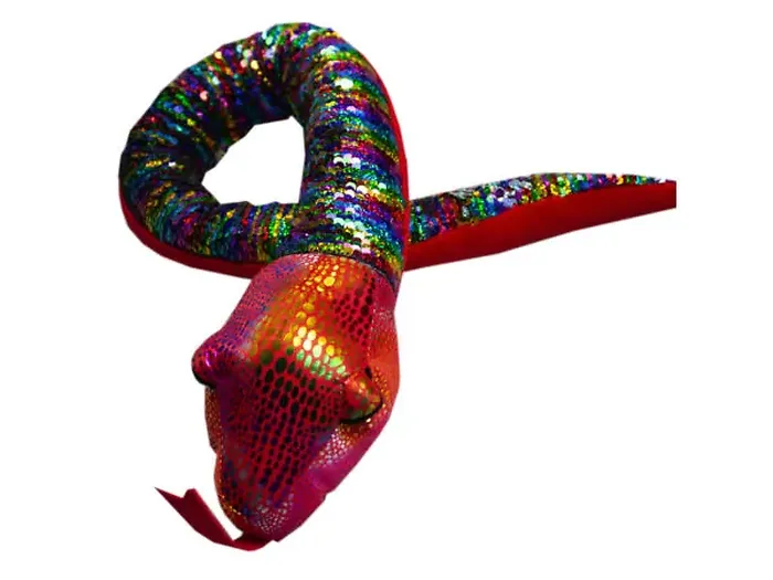 Discover the mesmerizing beauty of the Wild Republic 36" Plush Rainbow Sequin Snake. This enchanting plush toy offers both softness and shine, making it the perfect companion for children and collectors alike.