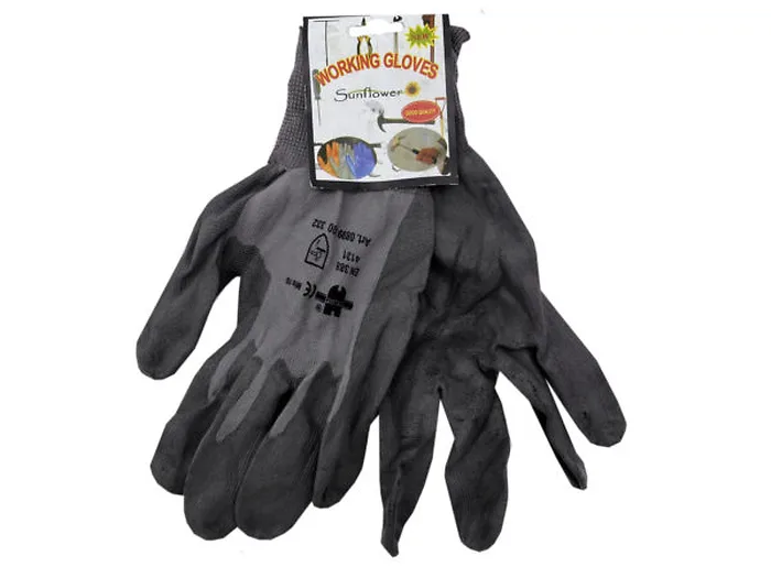 This set of Gray Polyester Working Gloves helps protect your hands from getting roughed up while gardening, working outdoors, or doing rugged chores around the house. These gloves are abrasion-resistant, have a superior grip, and still allow you to touch the screen on your smartphone or tablet while wearing them. Set comes packaged on a hanging card.