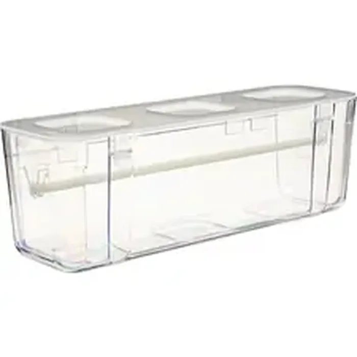 Store and organize your ribbon, tape, string or yarn in this Ribbon Dispenser. Clear plastic lets you easily find the items you're looking for without searching. Snap-tight lid keeps items secure and safely stowed. Simply unroll material to cut the desired length. Combine dispenser with Deflecto Stackable Caddy Organizer (not included) to transport without issue.