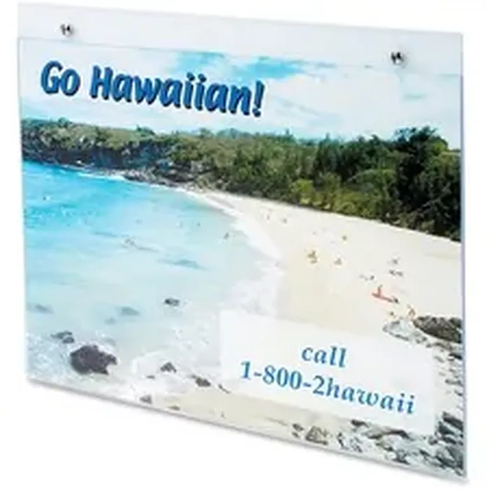 Wall-mountable sign holder saves counter space. Predrilled holes make wall-mounting easy. Sign holder is designed to protect your signs from stains, scratches and tears. Change letter-size sign inserts without removing holder from the wall. Transparent sign holder is made of durable, clear plastic and is recyclable.