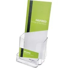 Compact, desktop literature holder features a four-pocket design so you can display a variety of leaflets on an incline and keep your literature in full view. Perfect for use in lobbies, restaurants, libraries and more. Each pocket displays literature in stacks up to 1-1/2" thick. Literature holder is made of crystal-clear plastic. Rounded edges offer smooth appearance. Use as a stand-alone display on your countertop or mount on a wall using the built-in holes.