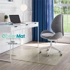 General InformationManufacturer:Deflecto, LLC Manufacturer Part Number:CM1K112OCB Manufacturer Website Address:http://www.deflecto.com Brand Name:Deflecto Product Line:OceanMat Product Model:CM1K112OCB Product Name:OceanMat Chairmat Marketing Information:OceanMat Chairmat is made from 100 percent recycled ocean-bound plastic to help reduce irresponsible waste by recycling. Lightweight chairmat functions best on low-pile and commercial carpets up to 1/4" thick. Bottom studs provide superior gripping power on carpets. Straight-edge chairmat prevents wear and tear on carpet.