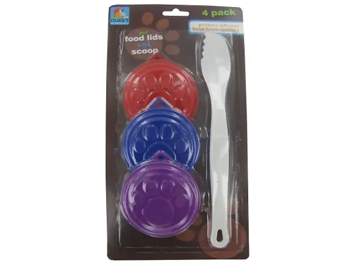 This Pet Food Storage Set includes three colorful lids designed to fit standard pet food cans, ensuring the food stays fresh and hygienic. It also comes with a long-handled scoop spoon, measuring 10 inches, for easy serving without the mess.