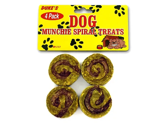 Introduce your furry friend to our 4 Pack Crunchy Spiral Dog Treats! These delicious munchies are made with high-quality chopped rawhide and flour, creating a satisfying crunch that your dog will love. Each roll measures approximately 2 3/8" in diameter and is 1/2" thick, making them perfect for dogs of all sizes.