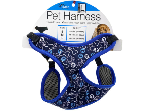 Gain more control over your dog's walking direction and attention with this Adjustable Dog Harness featuring a sturdy nylon harness that is adjustable in two areas. The dog harness tightens slightly across chest and shoulders which helps prevent pets from pulling on leash. Snap closures and adjustable buckles are made with durable black plastic and includes a metal D-ring for leash attachment. Comes in assorted colors. Comes packaged loose with a UPC tag.