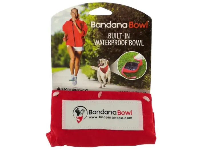 When your pup needs a hydration break, simply detach the bandana, fill it with water, and let them hydrate in style. Made from soft polyester with a durable nylon bowl lining, this product is perfect for keeping your dog refreshed during all your outings. Available in assorted colors for a fun touch!