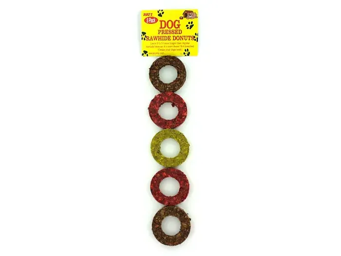 5 Pack Pressed Rawhide Dog Donuts - Assorted Colors