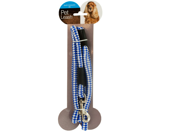 Walk your dog in style with this Fashion Pink Woven Nylon Dog Leash featuring a durable nylon leash in a fun, stylish design. Leash has a strong metal collar latch. Leash measures approximately 4' long. Comes in assorted styles: pink with purple stripe, pink and black checkered and pink with lime green dots. Comes packaged with a hang tag.