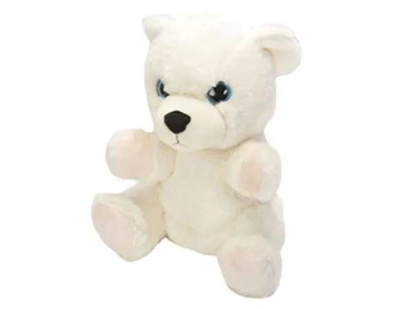 The bottom is filled with plastic pellets, allowing your new friend to sit upright perfectly. With its cute plastic eyes and nose, this plush bear is ready to become a beloved companion. It comes packaged loose with a hangtag and measures approximately 8" tall.