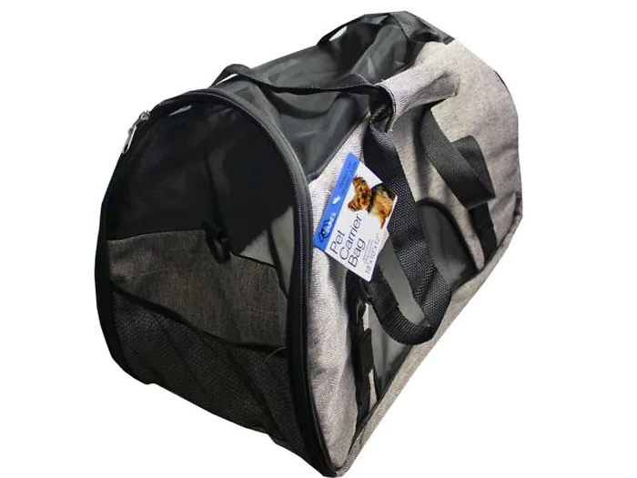 This Foldable Mesh and Cloth Pet Carrier Bag is perfect for taking your beloved pet to the vet, on long road trips to extended vacations, or even just out and about in both comfort and style. The bag is perfect for smaller dogs, cats of most sizes, rabbits, guinea pigs, hamsters, and more! The bag is made of breathable mesh, oxford fabric, and durable plastic to help ensure not only that your pet is safe, but also that they stay cool and comfortable inside of the bag. The bag features a handle on top, a zipper door for pet entry and exit, and a pocket on the side for their water, treats, and toys. The bag comes in the colors blue or gray, measures approximately 18" x 10" x 12", and comes packaged with a hanging tag attached.