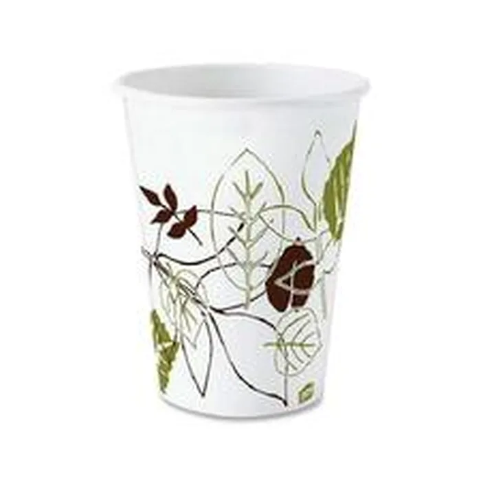Bring a contemporary look to your hot beverage service with paper cups featuring the eye-catching, Pathways design that is based on nature's beauty. Cups are ideal for samples and espresso drinks. They are polylined to protect against soak-through and offer durable sidewall strength. Hot cups are compostable in commercial composting facilities.