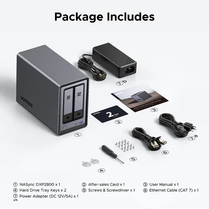 - 12th Gen 4-core Intel(R) Processor: With a 12th Gen, 4-core 4-thread Intel(R) Processor, processing performance is improved by leaps and bounds compared to previous processors.- One, All-Inclusive App: Rather than downloading individual applications for specific functions, the NAS App incorporates these functions into one place. Access Storage Manager, Files, Photos and more, all from one convenient location.- 2-Bay, Massive Data Storage: Equipped with two SATA and two M.2 NVMe drive bays, the NASync DXP2800 has a maximum storage capacity of up to 52TB.- 2.5GbE Network Port: With a 2.5GbE network port that reaches peak speeds of 312.5MB/s, you can download movies and large files smoothly like a breeze.- Professional Data Security: With Professional encryption, data transmission and accounts can be fully protected.