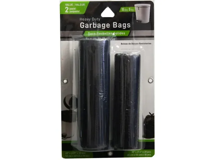 These Heavy Duty Garbage Bags are essential for every household. This value pack includes two different sizes, making them versatile for various trash needs. The package contains (30) 20" x 23.5" bags and (20) 18" x 21.5" bags.