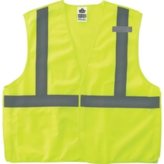 GloWear Type R Class 2 Econo Breakaway Mesh Vest combines protection, job-specific performance, innovation and style. Polyester mesh in an eye-catching fluorescent color is highly visible and ANSI/ISEA 107, Type R Class 2 compliant with 2" reflective tape for low-light visibility. Design includes breakaway hook-and-loop closures on the shoulders and sides for safety around snag hazards and moving parts. Machine-washable, breathable mesh fabric is lightweight, weighing only 3.3 oz. Lower interior pocket offers storage for essentials such as pens and notepads. MIC tab offers convenient radio access. Dual sizing fits a range of body sizes. Vest is great for road construction, utility crews, survey crews, construction, railway workers, baggage handlers, emergency response and warehousing/distribution.