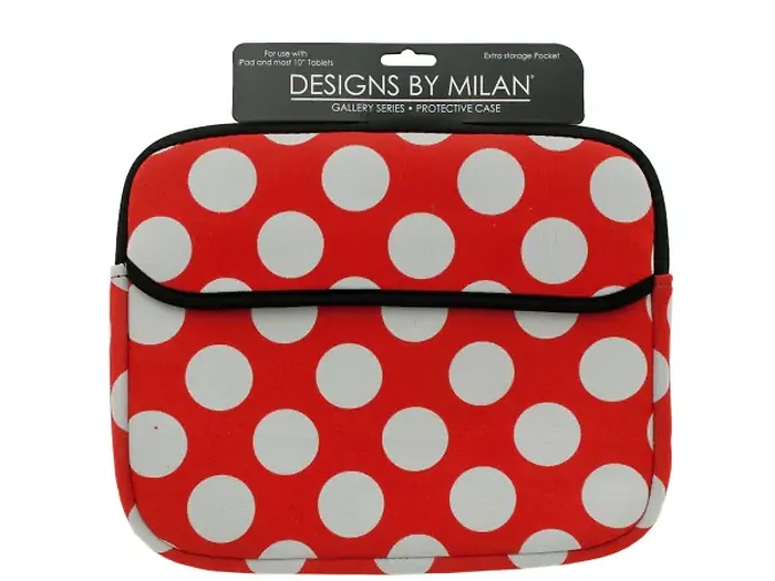 The Chic Red Polka Dot Tablet Case is designed to protect your 10" tablet in style. Featuring a vibrant red and grey polka dot pattern, this case not only safeguards your device from dust and scratches but also adds a fashionable touch to your tech accessories.