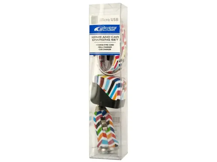 Stay connected and charged wherever you are with our Stylish 3-Piece Micro USB Charging Set. This versatile set includes a charge/sync cord, a wall charger, and a car charger, all designed with fun and vibrant prints. Whether at home or on the move, ensure your devices are powered up with this convenient charging solution.