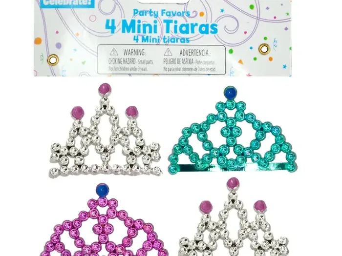 Make every princess feel special with our 4-Piece Mini Tiaras Party Favors Set. Perfect for birthday parties and themed events, these tiaras are created from metallic plastic and feature a stunning jeweled design to captivate young princesses.