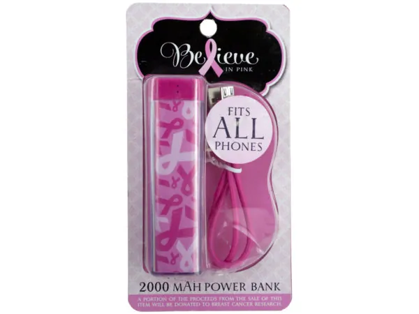 Pink 2200 mAh Power Bank with LED Light Bar