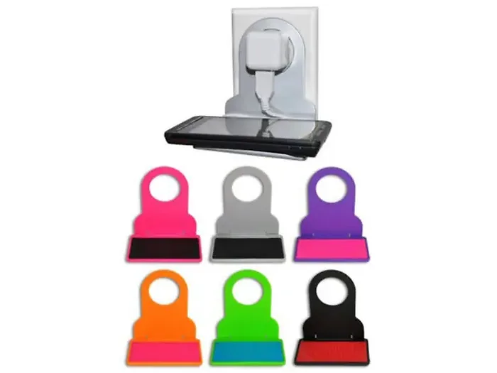 The shelf features a sticky mat surface that keeps your phone secure and prevents slipping. The integrated hook conveniently fits over wall chargers for a tidy setup. Available in a variety of colors, this shelf is perfect for any room.