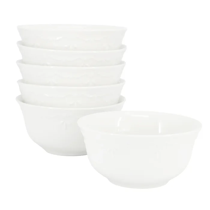 The Elama Henryi Elegant White Porcelain Bowl Set includes six 6.1-inch bowls that blend style and function. Crafted from high-quality porcelain, these bowls are built to last while retaining their pristine white finish. Perfect for serving a range of dishes from soups and salads to snacks and sides, they elevate both casual and formal dining experiences.