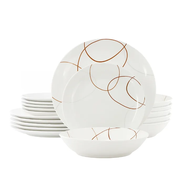 Experience modern dining with the Elama Sydney 18-Piece Dinnerware Set. Crafted from high-quality porcelain, this set is designed for both style and functionality, featuring a pristine white base accented with an elegant abstract design. The round shape of each piece makes it easy to complement existing serveware, making it suitable for casual meals or special occasions.