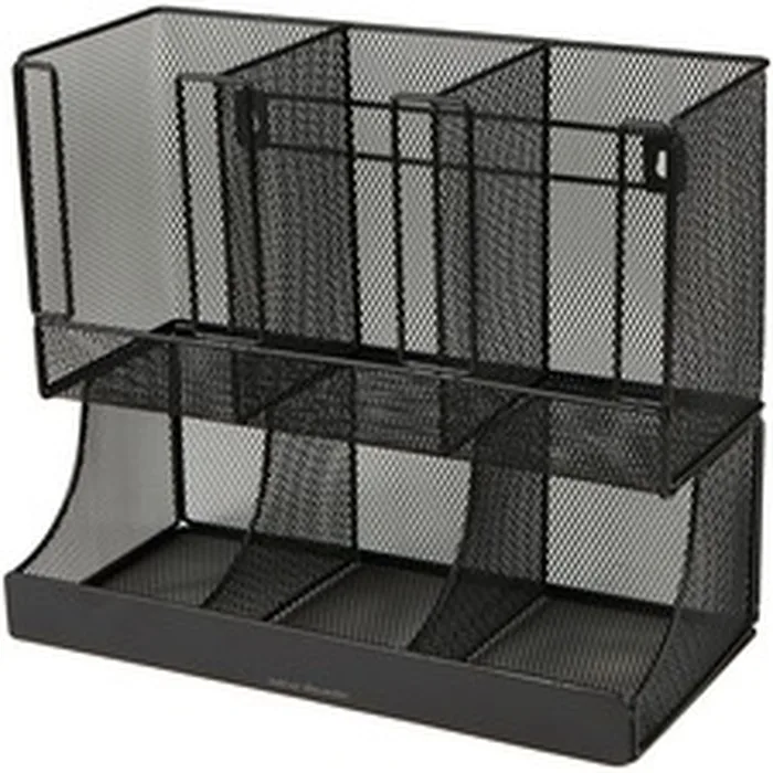 Mind Reader 6-Compartment Coffee Condiment Organizer - 6 Compartment(s) - 2 Tier(s) - 11.1" Height x 12.8" Width6.3" Length - Counter, Desktop, Tabletop - Durable, Lightweight, Easy to Clean, Food Safe - Black - Metal Mesh - 1 Each