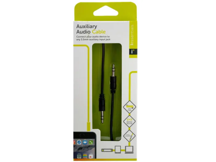 Play your music in the car and elsewhere with this iessentials Black Auxiliary Audio Cable featuring a durable cable in a compact, lightweight design with 3.5mm stereo-mini plugs to connect your iPod/iPhone or smartphone device to your car, office or home sound system. Compatible with all devices that have a 3.5mm audio jack, including iPod, iPhone, iPad, Android, smartphones, Blackberry and MP3 devices. Measures approximately 3.3' long. Comes packaged in a hanging box. Box measures approximately 3" x 0.875" x 7.375".