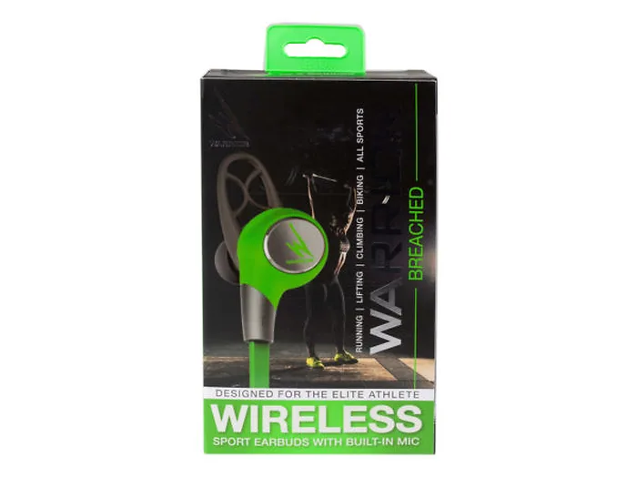 Boost your performance with this iHip Warrior Wireless Bluetooth Sports Earbuds. The earbuds are sweat resistant and gym ready in-ear comfort. These earbuds are tangle free and have a built-in-mic, simply press the microphone to pause, play and pick up calls. Earbuds come in green and grey color. The flat cord provides a tangle-free experience. The package includes breached earphones, custom pouch, two extra ear tip size, and charging cable. It comes packaged in an individual hanging box.