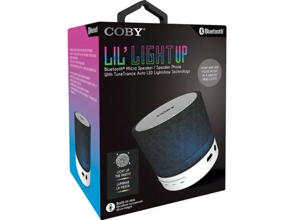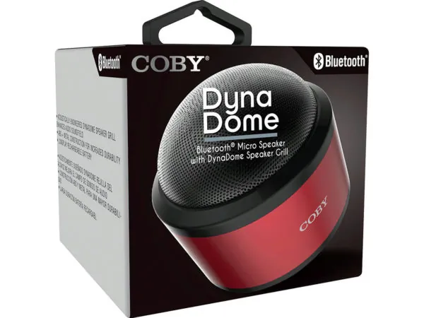 Turn the beat around with this Blue Dyna Dome Bluetooth Speaker by COBY. The compact portable design is perfect to use indoors and outdoors. It is acoustically engineered to enhance the audio sound field. It has 6 hours of play time and two hours of charge time. It comes with a Micro USB and 3.5mm Aux cord. It connects with most devices. The Bluetooth ranges up to 33 feet. The speaker is approximately 2.25" x 2.50" in size and comes packaged in a 3" x 3.25"x 3" hanging box. Turn the beat around with this blue dyne dome Bluetooth speaker by coby. The compact portable design is perfect to use indoors and outdoors. It is acoustically engineered to enhance the audio sound field. It has 6 hours of play time and two hours of charge time. It have a micro USB and 3.5mm aux cord. It connects with most devices. The Bluetooth ranges up to 33 feet. SpecificationsColor: BlueSize: 2.25" x 2.50"Weight: 0.67 lbs- SKU: SWM32643