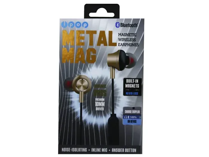 The iPop Magnetic Bluetooth Earphones in Gold and Black deliver exceptional stereo sound coupled with rich bass. These earphones feature a built-in volume control and an in-line microphone with an answer button, ensuring you never miss a call while on the go.