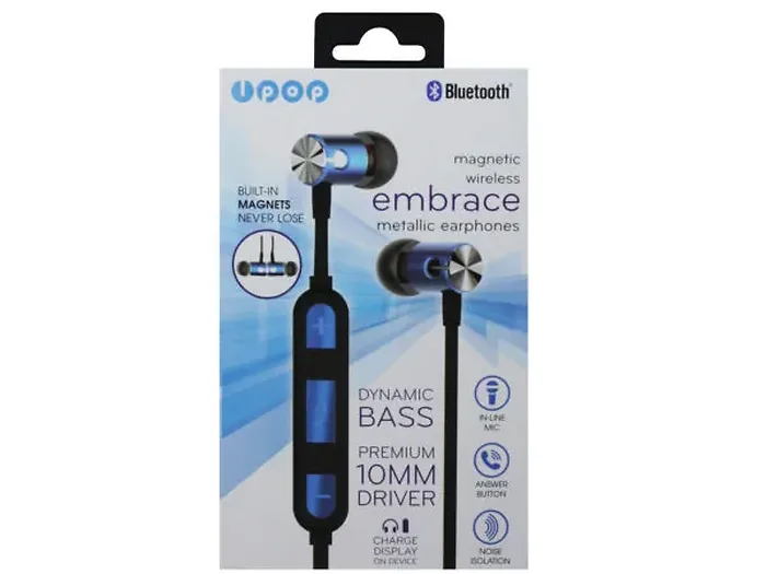 The iPop Embrace Bluetooth Earphones in blue deliver premium stereo sound and dynamic bass, ensuring an immersive audio experience. Designed with convenience in mind, these earphones feature volume control and an in-line microphone with an answer button, allowing you to take calls hands-free.