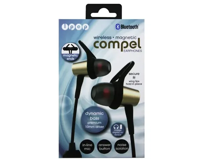 The iPop Compel Gold Wireless Earphones deliver exceptional stereo sound with dynamic bass. Equipped with volume control and an in-line microphone featuring a convenient answer button, you'll never miss a call. Experience noise isolation for crystal clear audio quality.