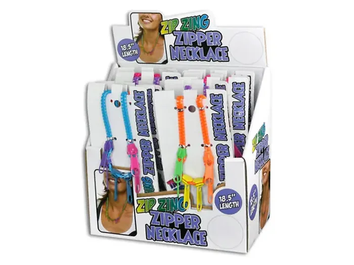 Assorted Color Neon Zipper Pull Necklaces Display