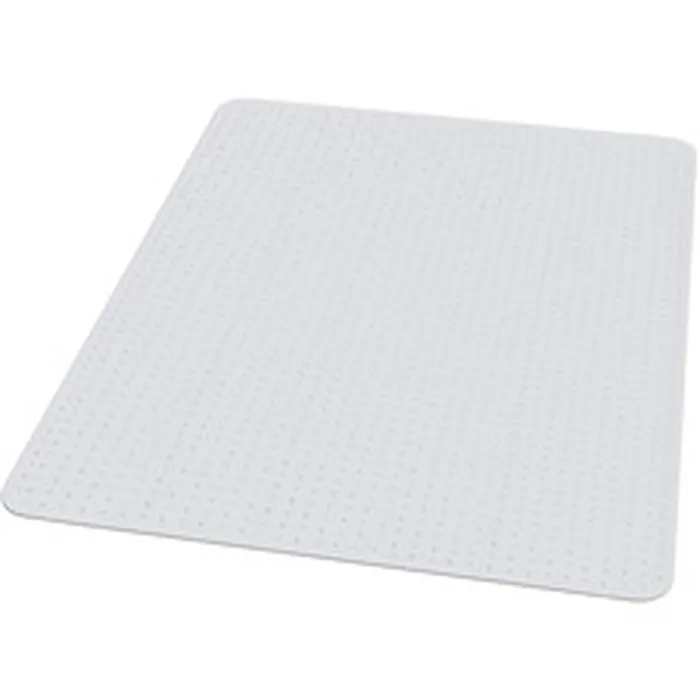 Rectangular, crystal-clear mat with a straight edge is designed to preserve and protect your low-pile carpet up to 1/4" thick (including padding). Exclusive, AnchorBar chairmat cleat system provides easy handling, long-lasting durability and a clean, modern look. Chairmat cleats hold mat firmly in place yet are gentle on carpet and fingers. Engineered for optimum clarity, high performance and a smooth effortless roll, thick vinyl mat is designed for heavy use to protect against wear and tear from chair casters. Mat offers a thickness of 98 mil.