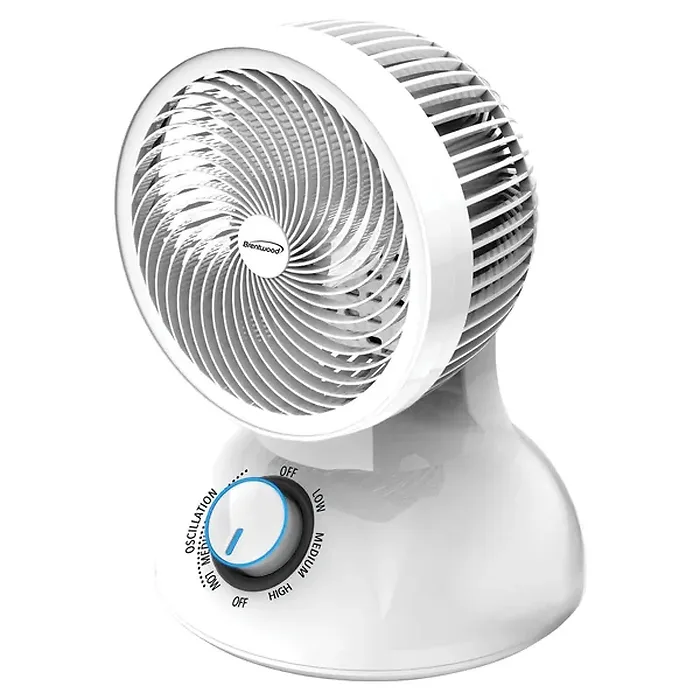 The Brentwood 6 inch oscillating fan is your ideal cooling companion for any workspace or home environment. Its compact size of just 6 inches makes it portable without compromising on power, effectively cooling areas up to 21 feet away.